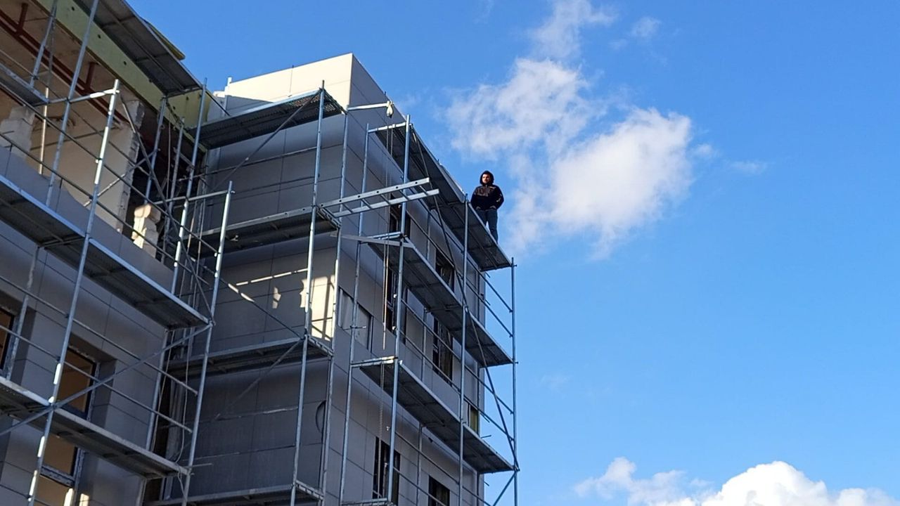 Edinilen bilgiye göre olay, Yenimahalle Yalı Caddesi üzerindeki Tarım ve Orman İlçe Müdürlüğü hizmet binası inşaatında yaşandı. İnşaatta çalışan Naim Uğur, iddiaya göre birikmiş alacaklarını alamadığı gerekçesiyle yapımı süren binanın üçüncü katındaki iskeleye çıktı.