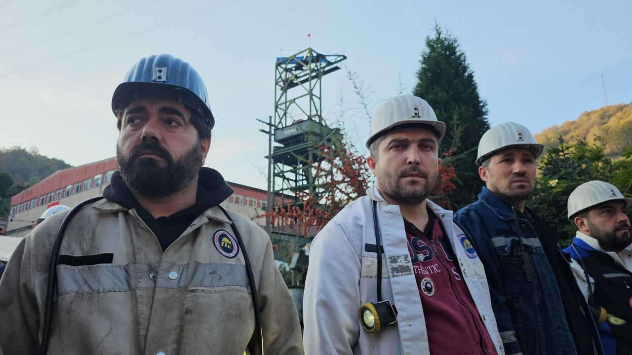 Maden işçileri ve teknik personel, görev yaptıkları bölgelerde iki dakikalık saygı duruşunda bulundu.