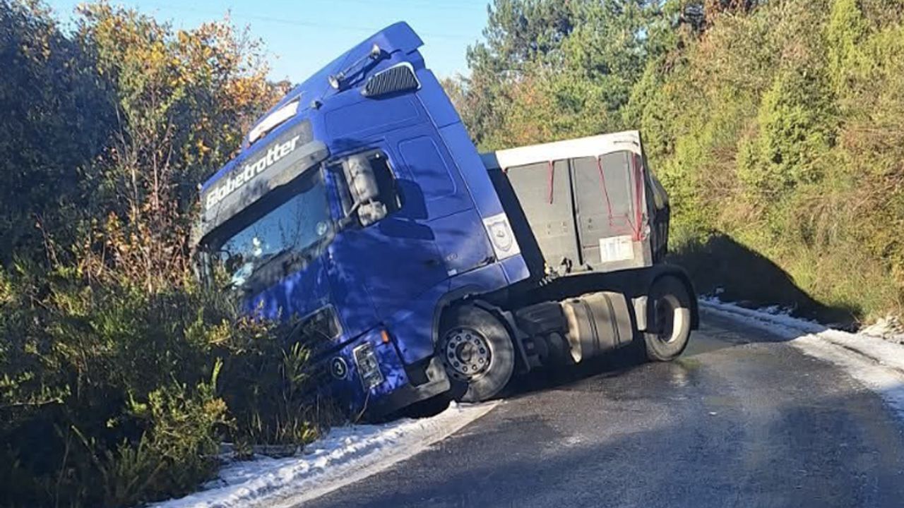 Zonguldak'ın Alaplı ilçesi İncivez ile Osmanlı köyü arasında virajı alamayan tır trafiği kilitledi. Edinilen bilgilere göre bugün 14.00 sıralarında meydana gelen kazada.virajı alamahan tır yoldan çıktı. Kazada şans eseri.ölen yada yaralanan olmadı.