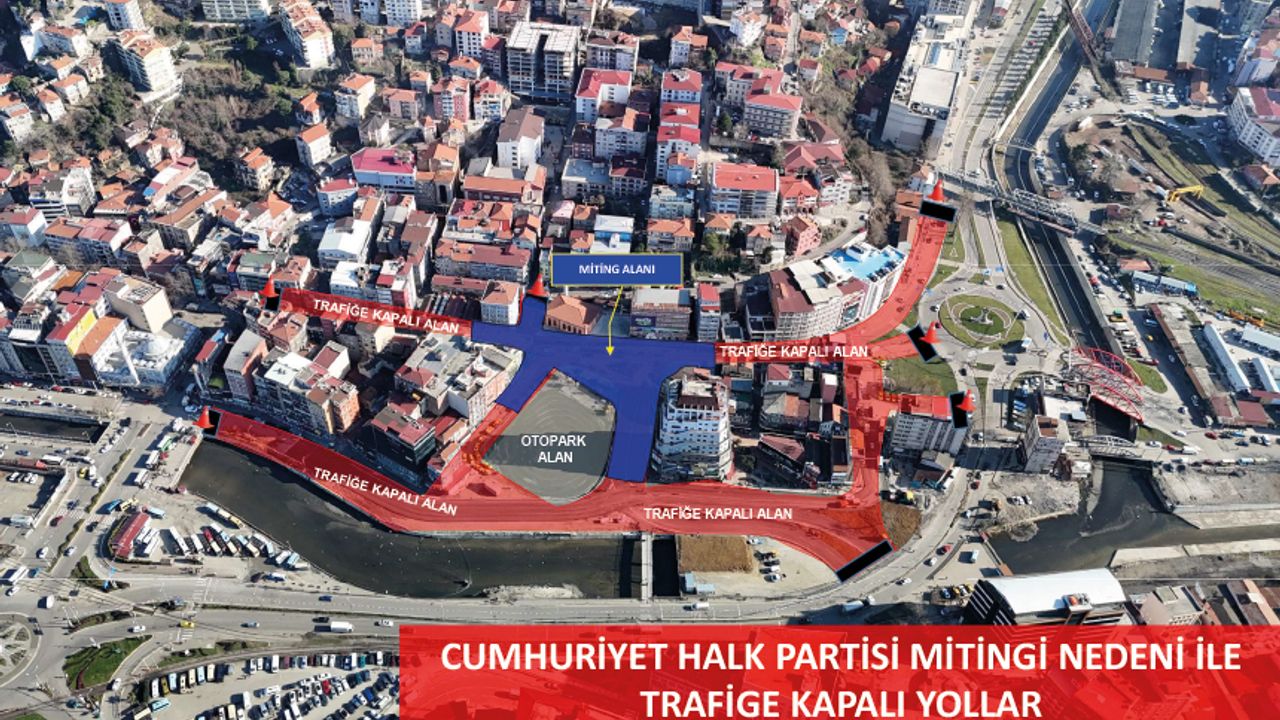 Zonguldak Valiliği’nden yapılan açıklama şu şekilde; 22.11.2025 Cumartesi günü saat 15:00’da Cumhuriyet Halk Partisi tarafından İşçi Anıtında yapılacak Açık Hava Toplantısı ile ilgili alınacak trafik tedbirleri kapsamında Gazipaşa Caddesinin Ayyıldız Kavşağı ile Ulu Cami Arasındaki kesimi ile Uzun Mehmet Caddesinin Güven Kavşağı ile Belediye Arkası Işıklı Kavşak arasında kalan kesimi araç trafiğine kapatılacaktır.